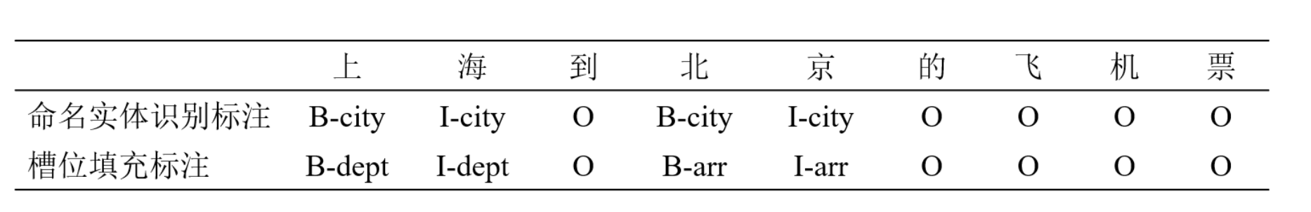 - 可以看到槽位填充标注中,针对订机票意图的城市实体的标注,我们使用dept和arr来区分出发地和目的地实体,所以我们应该使用上图中第二种标注方式来标注数据,然后训练序列标注模型,最后用该模型去做槽位值识别。