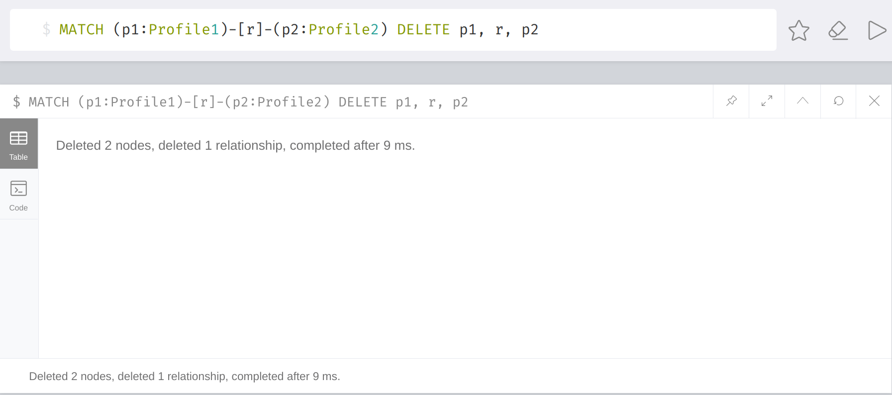 MATCH (p1:Profile1)-[r]-(p2:Profile2) DELETE p1, r, p2