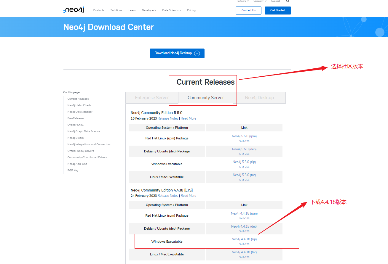 - 从官网下载社区版本, 下载地址: https://neo4j.com/download-center/#community