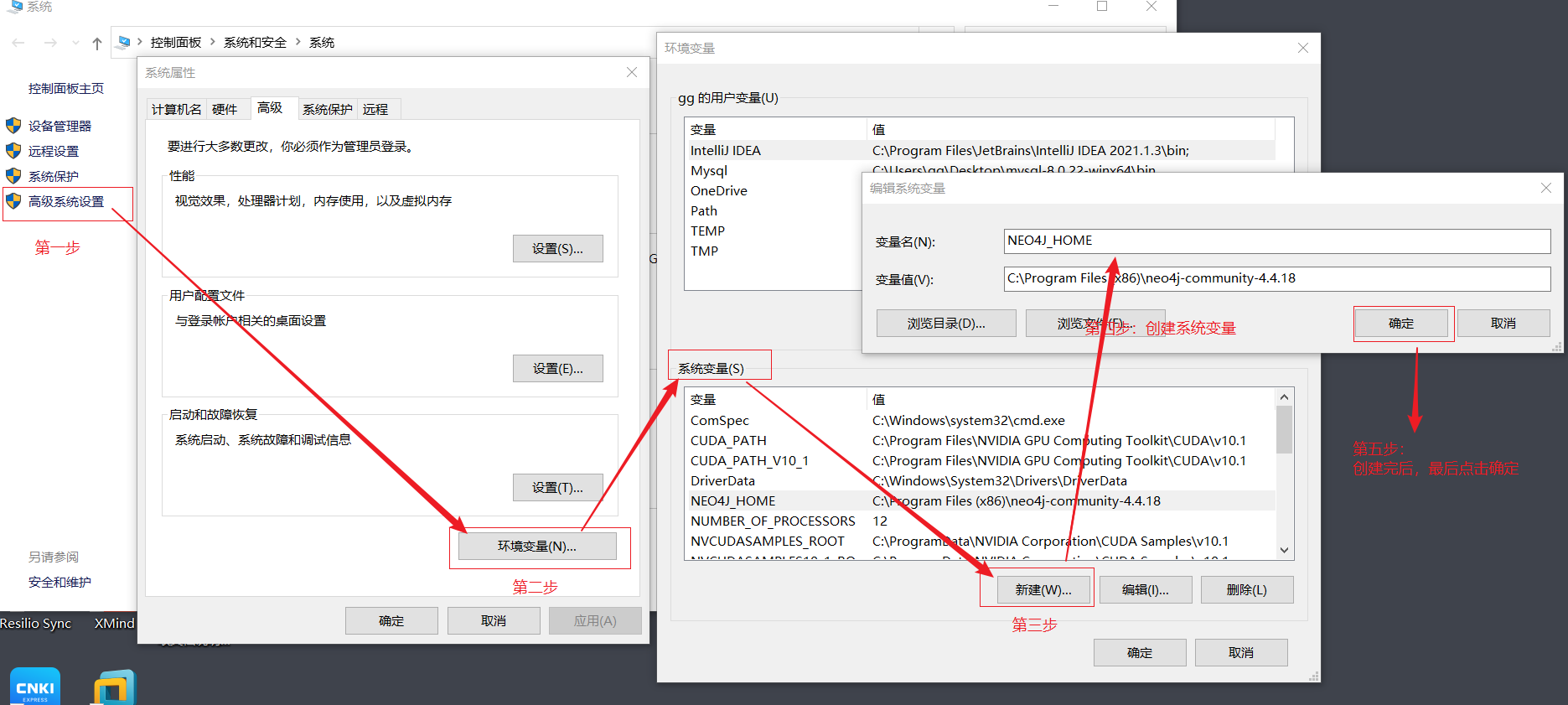 - 过程: 电脑--->属性--->高级系统设置--->环境变量--->新建