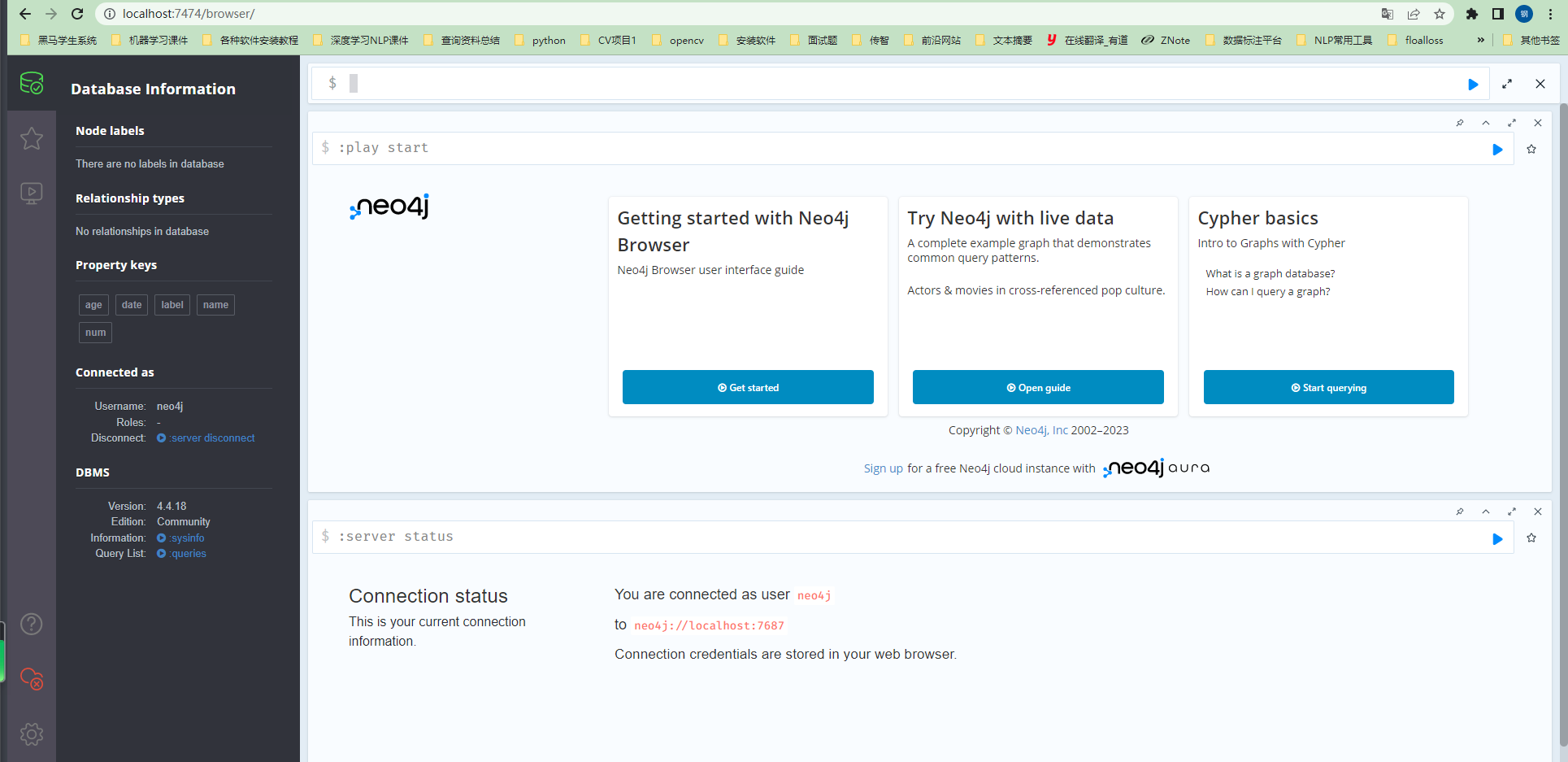 - 注意: 如果你是第一次安装登录成功, 需要输入用户名和密码(默认用户名和密码一致都是: neo4j). 第一次登录需要更改密码.