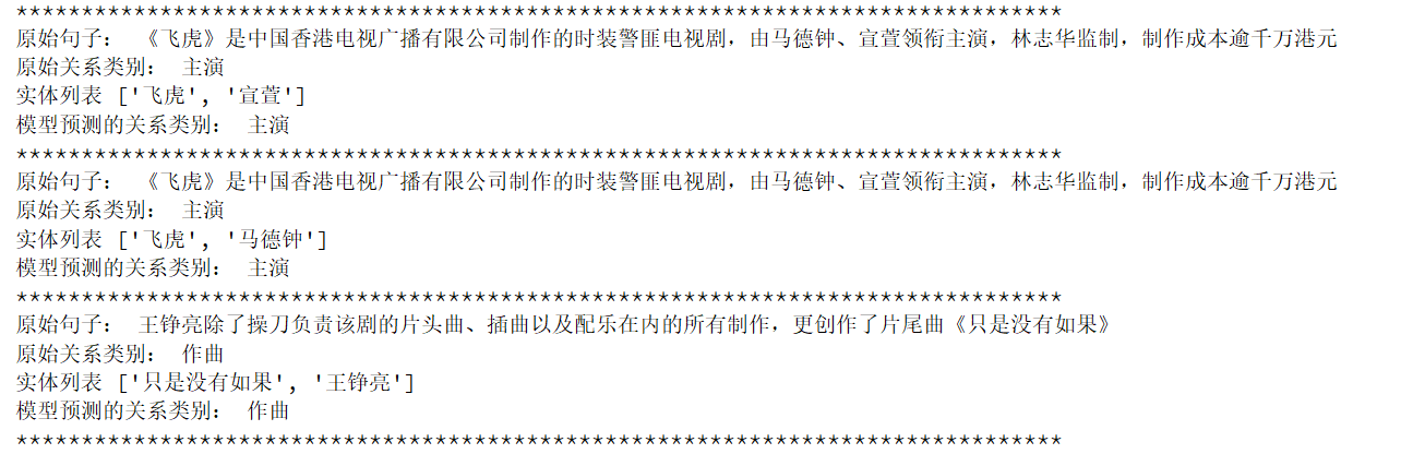 - 使用训练好的模型,随机抽取文本进行关系抽取