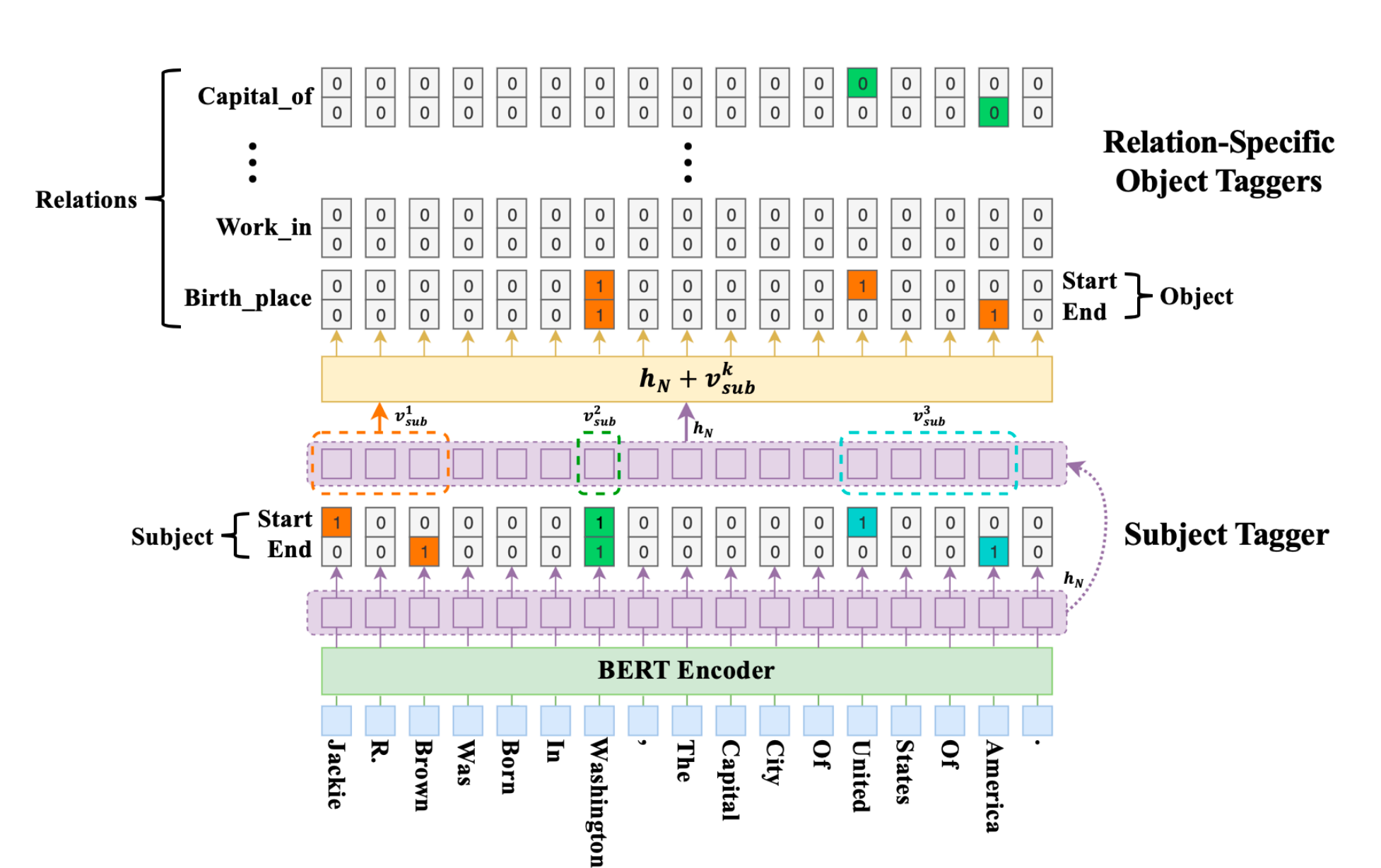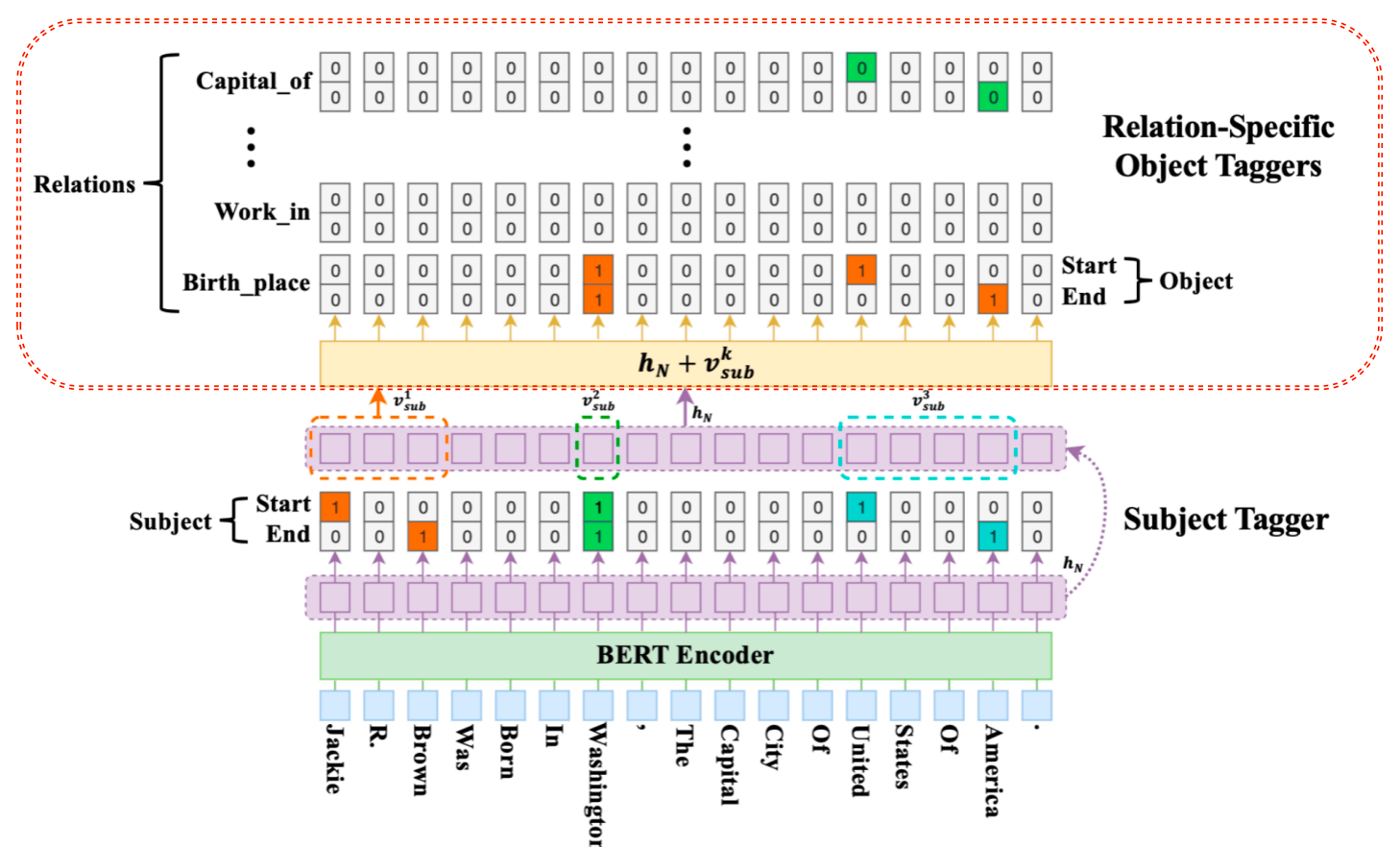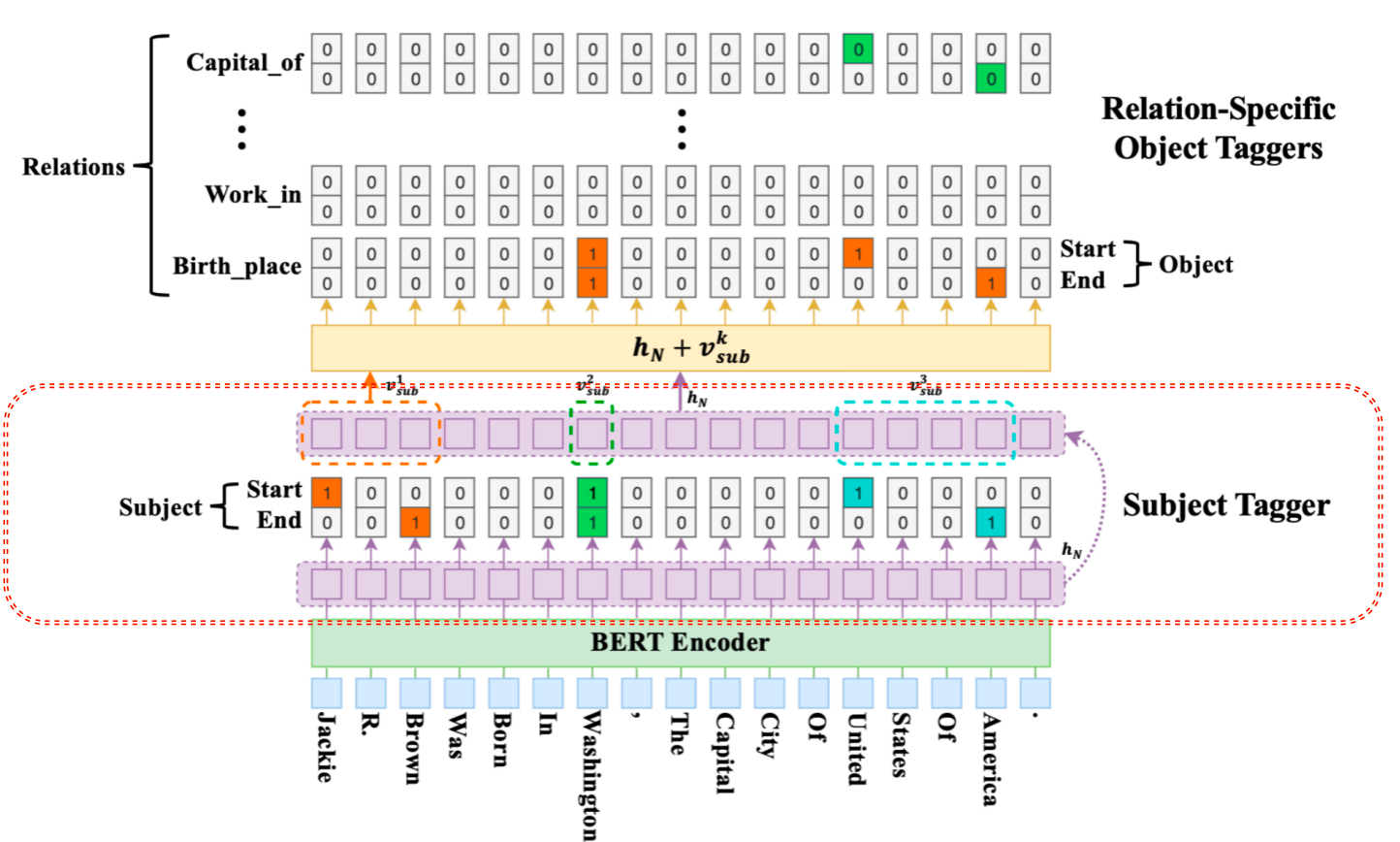 - 第二部要根据识别出的 subject, 识别出所有有可能的 relation 以及对应的 object.